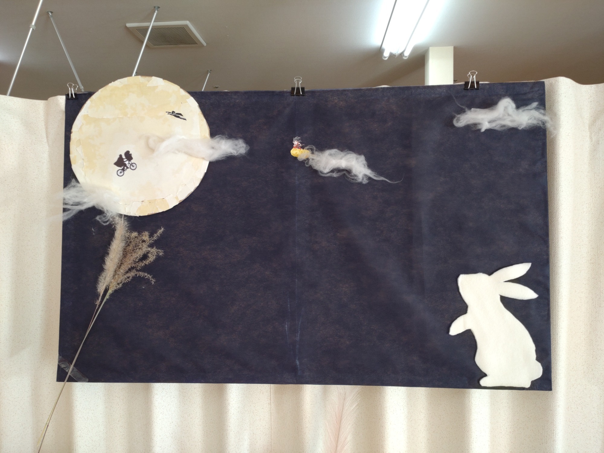 ☽🌕中秋の名月🌕ご利用者様と一緒に、新聞紙とお花紙を使って手作りのお月見団子を作りました。皆さま、懐かしさを感じながら丁寧に丸めてくださり、笑顔があふれるひとときとなりました。ホールには、十五夜にちなんだお月様とうさぎの飾りも登場。幻想的な雰囲気の中、ふと見上げたお月様には…なぜかETを思わせるようなシルエットが浮かび上がっていて、思わず笑いがこぼれました。