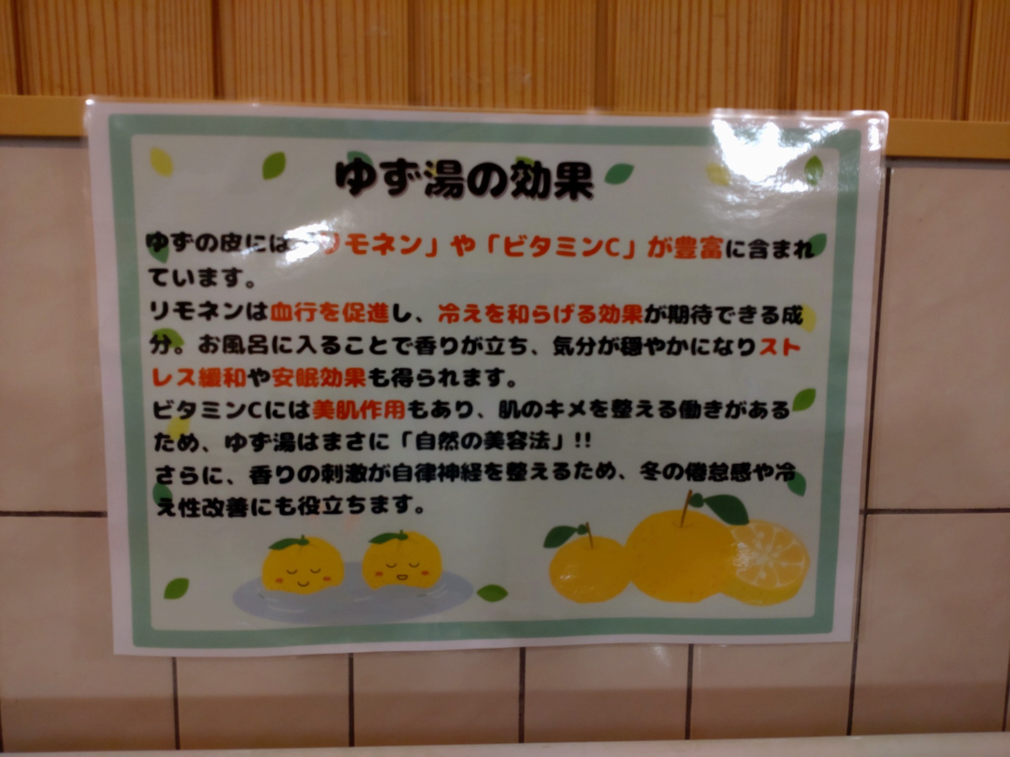 日本では古くから冬至の日に「ゆず湯」に入ると『一年中風邪をひかない』と言い伝えがあります♨ ということで、冬至の当時…(←ダジャレか!!(笑))ご利用者様に、『ゆず湯』をゆっくり堪能していただきました ポワーン(꒪ˊ꒳ˋ꒪)ꕤ*.゚