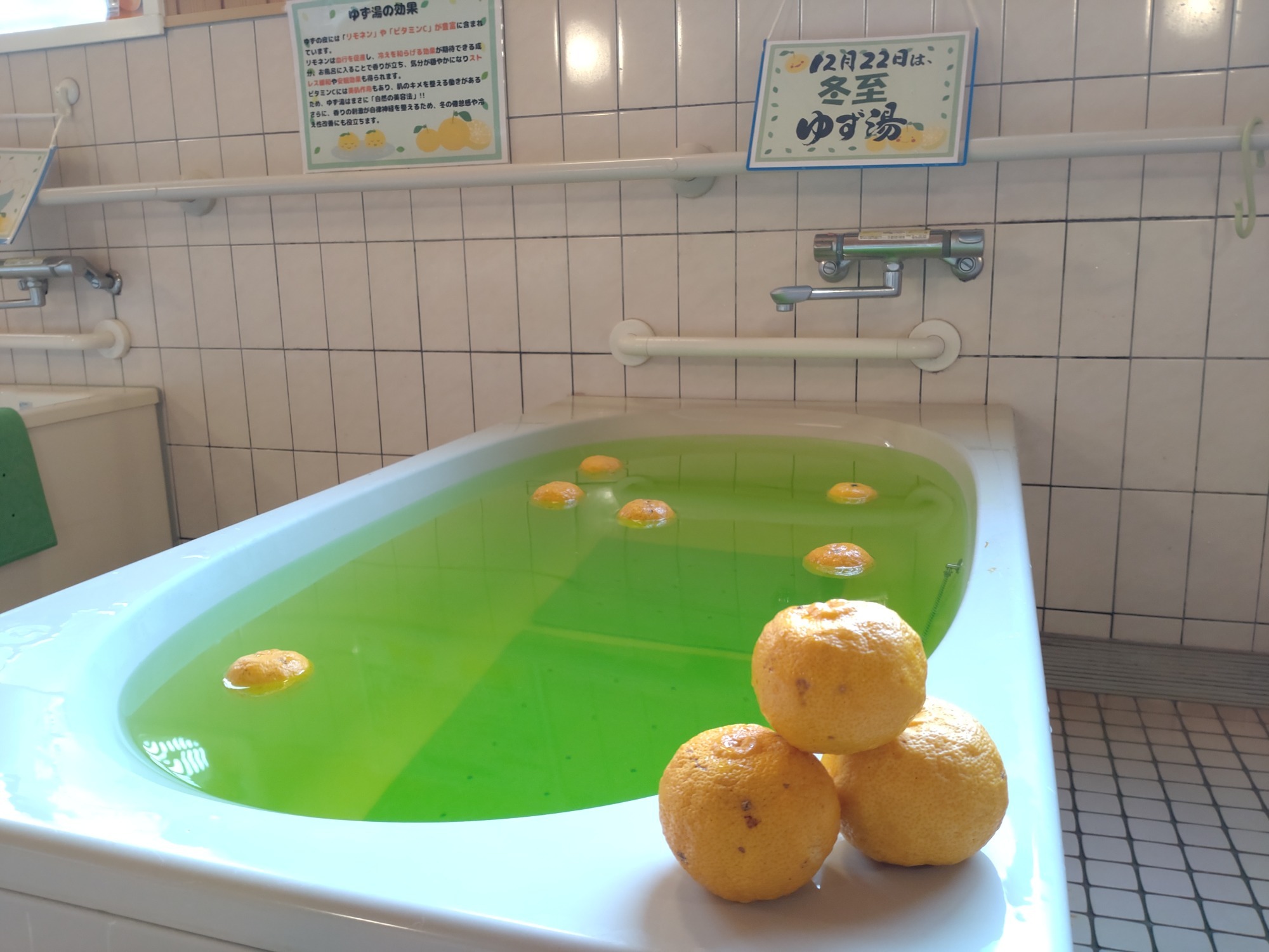 🛁”ゆず湯”🛀 先日、12月22日は『冬至』でしたね。ショートステイ・デイサービスの”こもれびの湯”では、冬至の日に利用者の皆さまへ柚子風呂をご用意し、ゆったりとくつろいでいただきました。爽やかな柚子の香りに包まれながら、心も体も温まるひとときを過ごしていただけたようで、皆さまの笑顔がとても印象的でした。これからも季節を感じられる行事を大切にし、心地よい時間を提供してまいります。 ≪令和7年12月≫