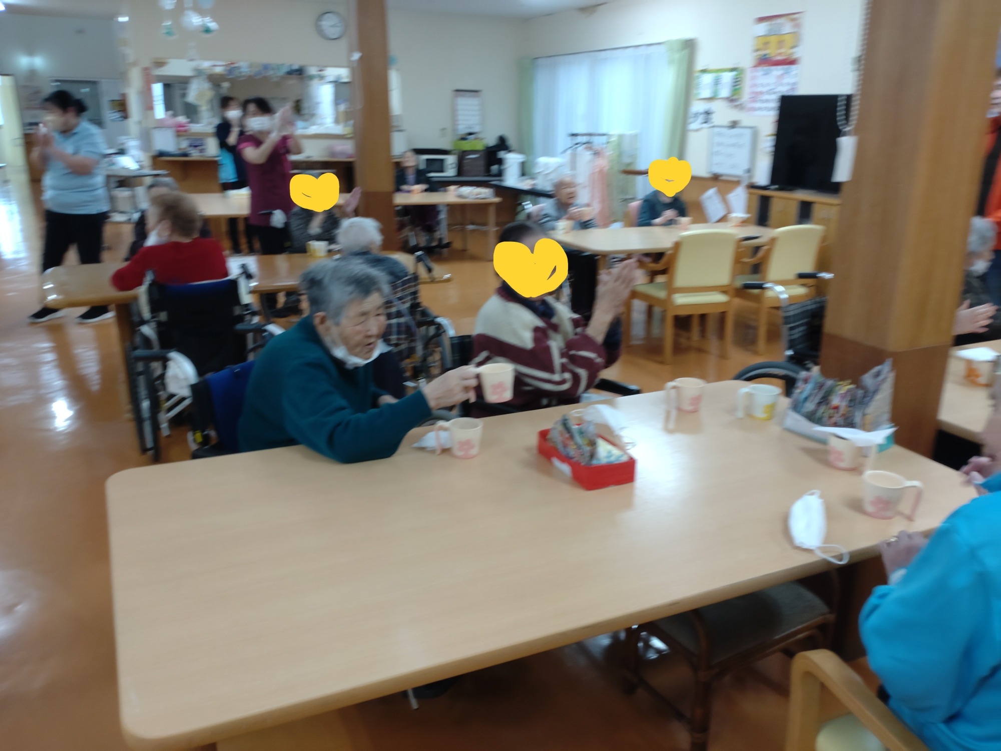 今年もショートステイでは、元気いっぱいのスタートダッシュを切りました。まずは恒例の“甘酒で新年の乾杯”。「え、もう飲むの?」と慎重派の声が上がる一方で、コップに甘酒が注がれた瞬間、誰よりも早く飲み干してしまうご利用者様もいて、乾杯前から場の空気はほっこり温まっていました。「今年も健康で、笑顔いっぱいの一年になりますように」と願いを込めて、全員で楽しく乾杯。新年の幕開けにふさわしい、温かく幸せな時間となりました。≪令和8年1月≫
