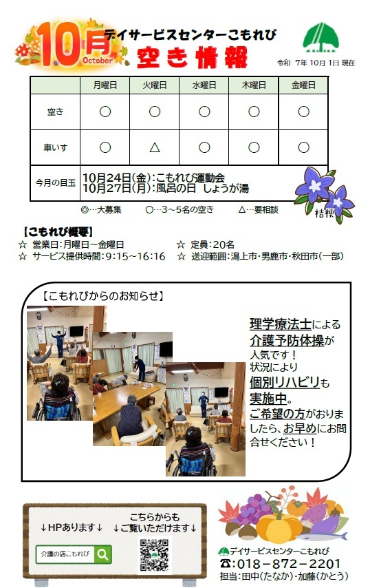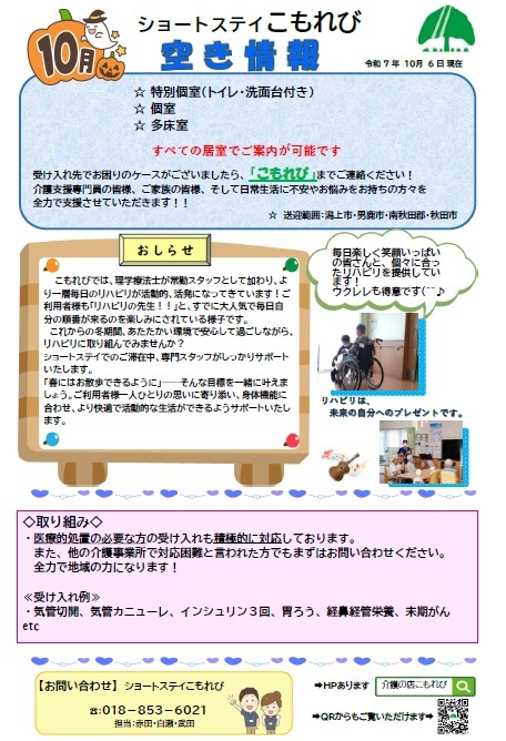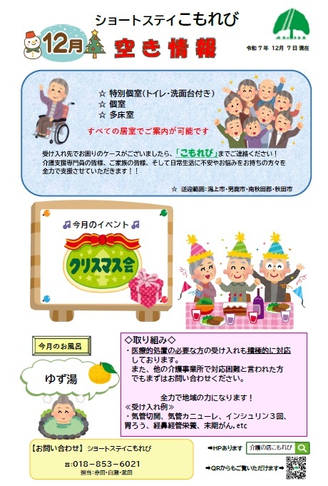 私たちショートステイこもれびでは、介護にあたるご家族様のお時間を、レスパイトケア(休息)で、応援しております♪